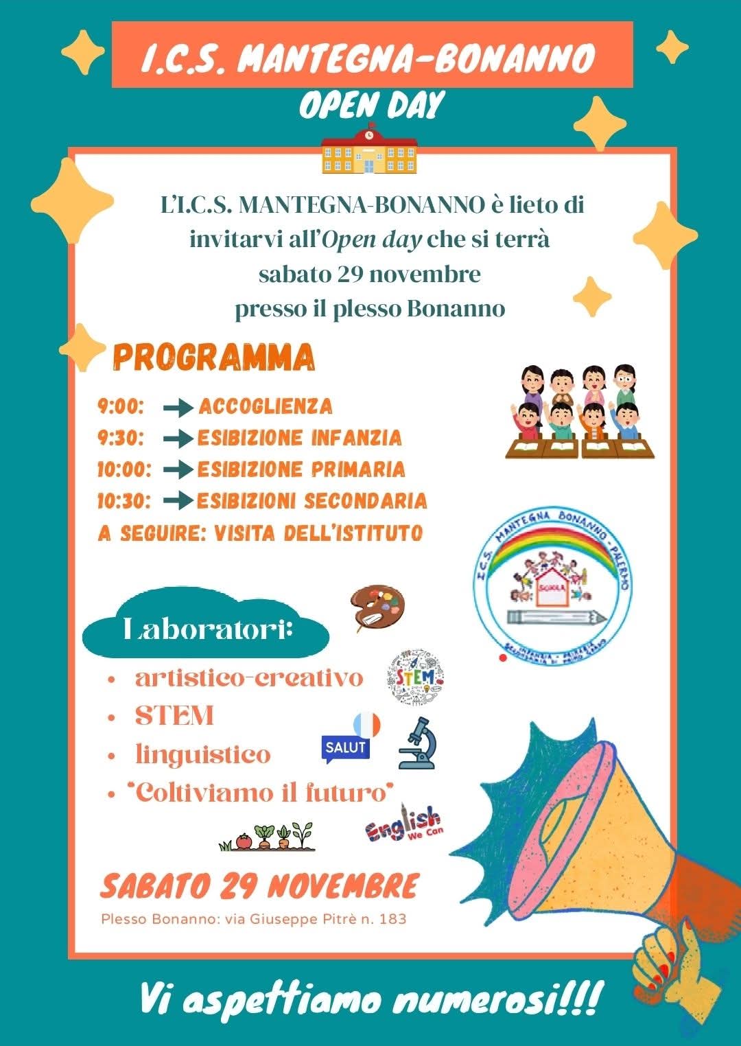 Invito open day giorno 29 novembre 2025 – Plesso Bonanno